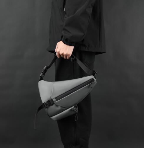 スタイリッシュな三角型デザインのメンズ用ボディバッグです。